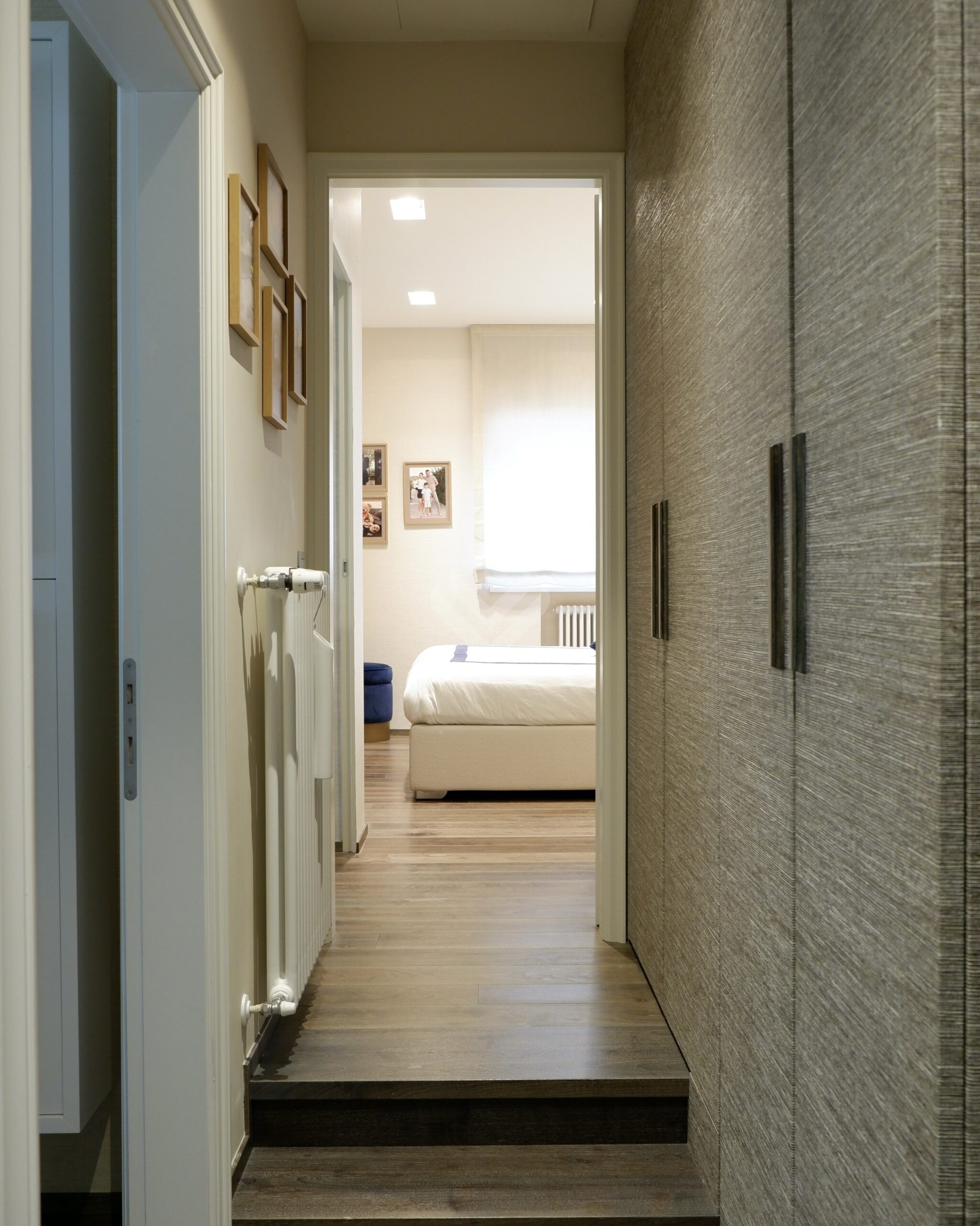 Al piano superiore si sviluppa la zona notte, composta da tre camere da letto e due bagni. La camera padronale, ampia e luminosa, dispone di bagno privato e cabina armadio, mentre le altre due camere condividono un bagno moderno e ben rifinito.