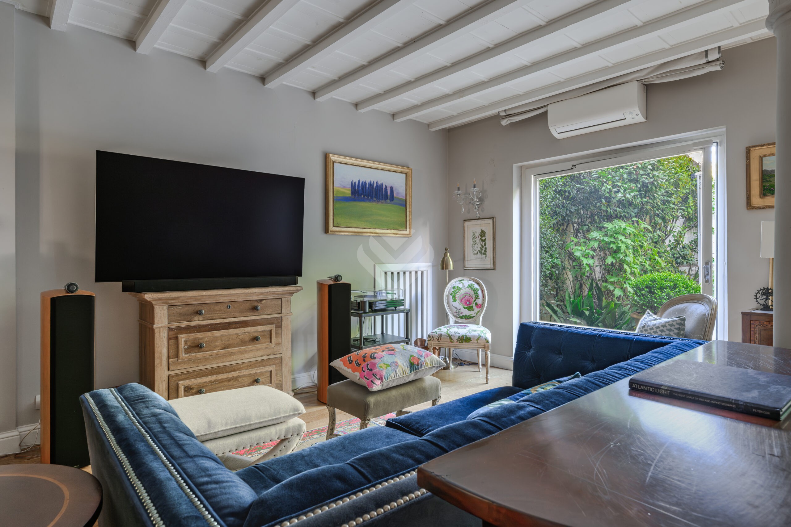 Dall’ingresso si accede alla luminosa zona living con area pranzo, sapientemente collegata al giardino da due ampie porte finestre che inondano l’ambiente di luce naturale. Il giardino interno di 55 mq, curato nei minimi particolari, offre un rifugio riservato all’insegna della tranquillità e della privacy.
