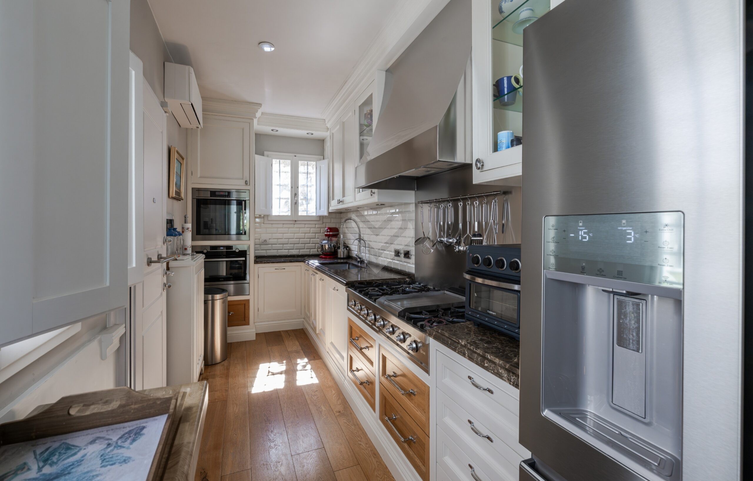 L’appartamento, di circa 185 mq, è stato oggetto di una ristrutturazione impeccabile, con finiture di altissimo pregio e una cura meticolosa per ogni dettaglio.