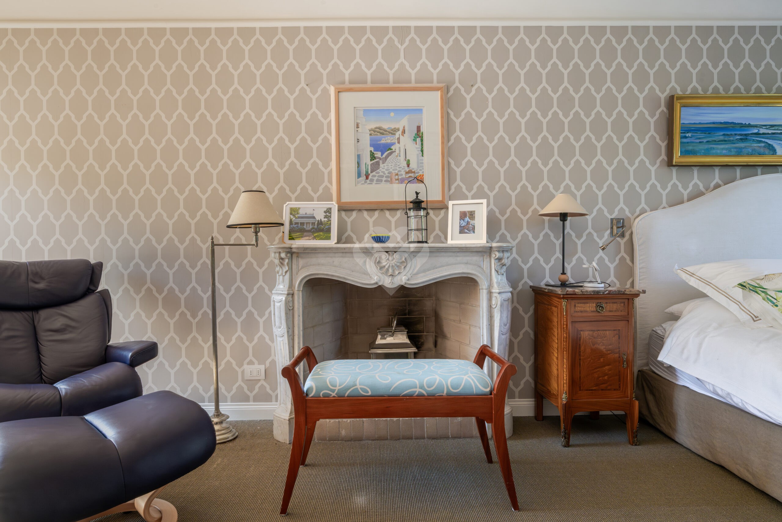 Una suggestiva scala a chiocciola in pietra conduce al primo piano, dove si sviluppa la zona notte. La splendida camera padronale, arricchita da un caminetto, è impreziosita da due ampie terrazze private che regalano una vista incantevole sui monumenti di Firenze e sulle colline che circondano il Forte Belvedere. Completano il piano il bagno padronale, una seconda camera con bagno dedicato e un terzo ambiente, ideale come studio o stanza multifunzionale.