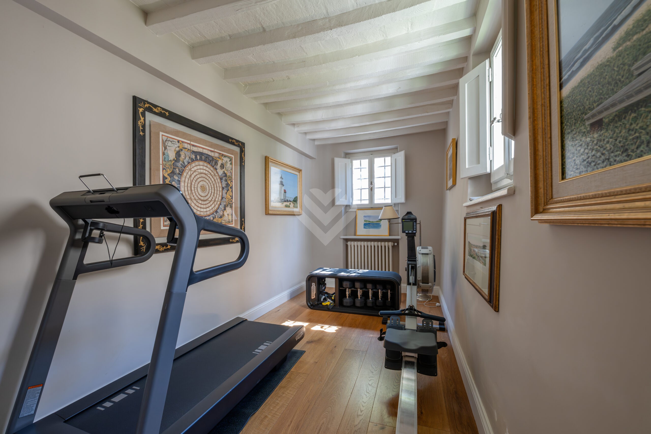 Sullo stesso livello si trova inoltre una confortevole camera ospiti — attualmente adibita a fitness room — dotata di bagno privato, a garanzia di comfort e riservatezza.