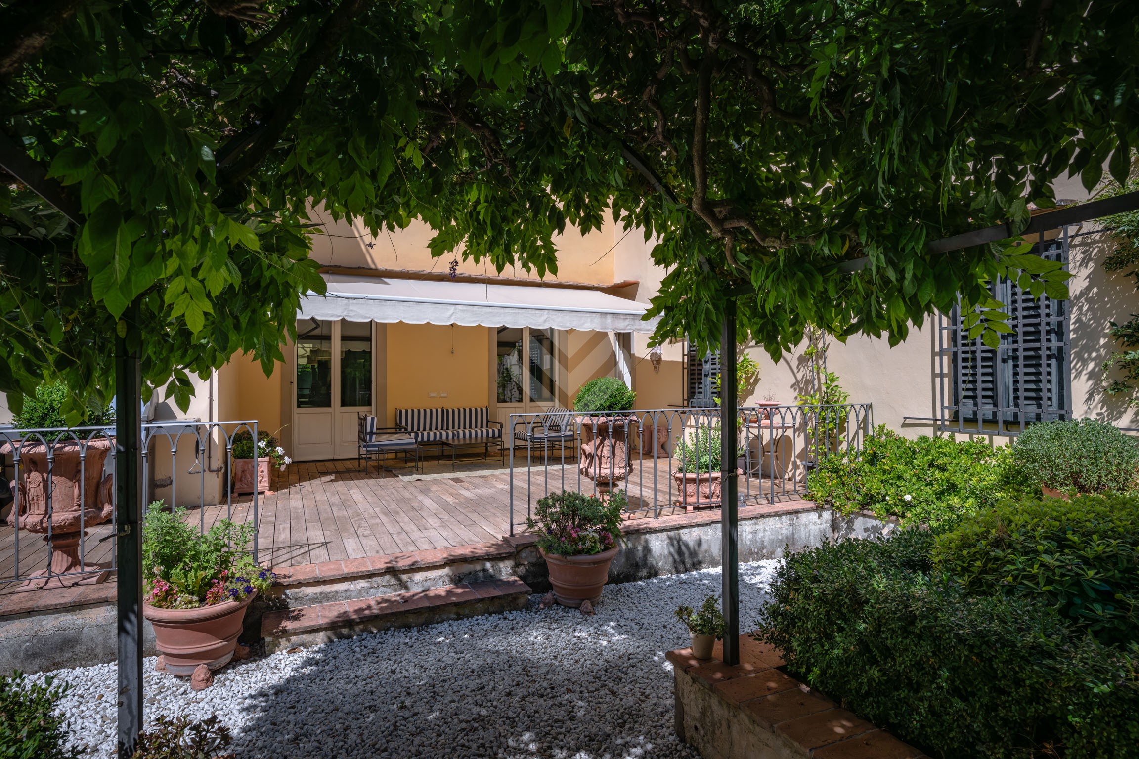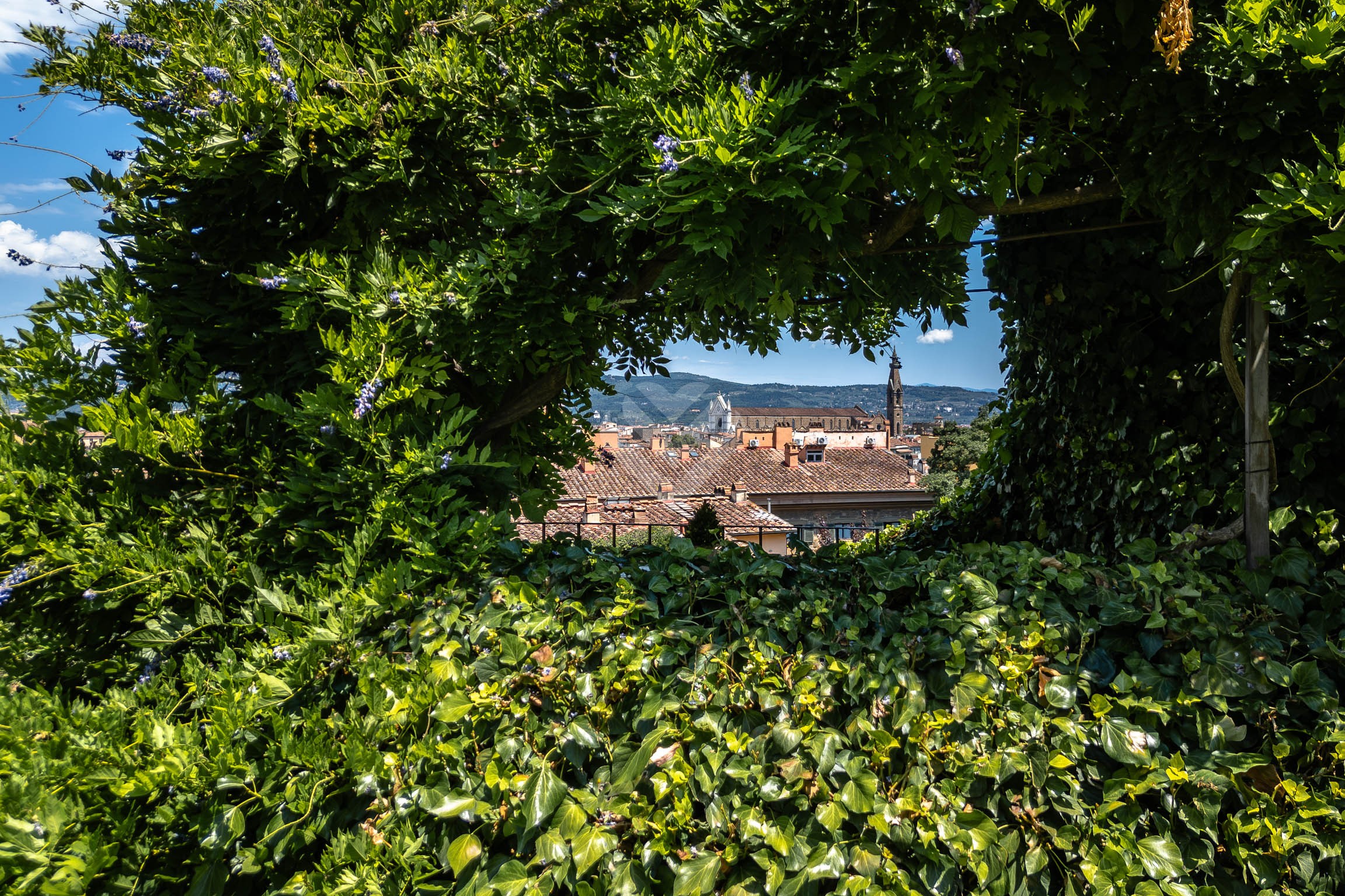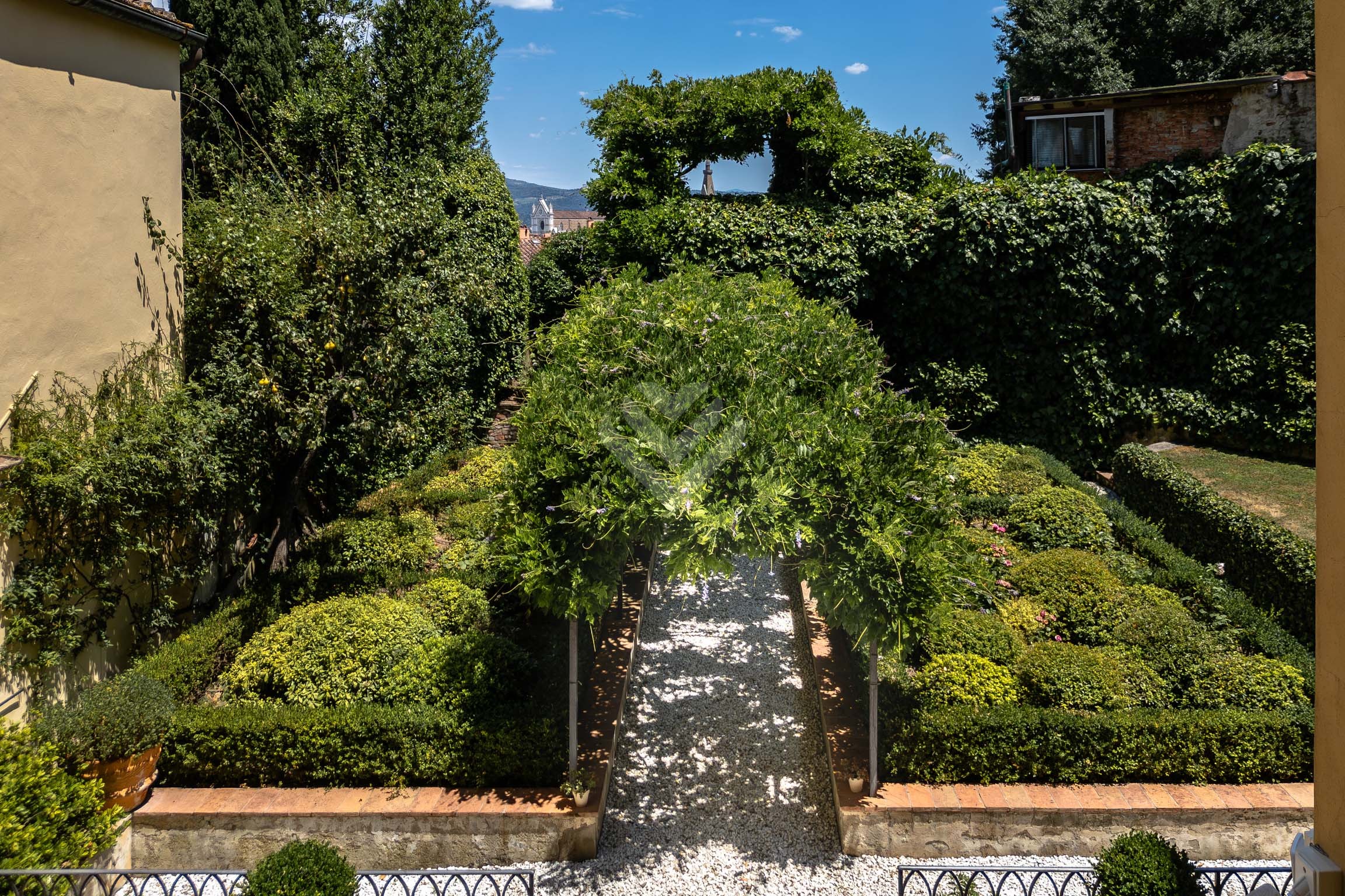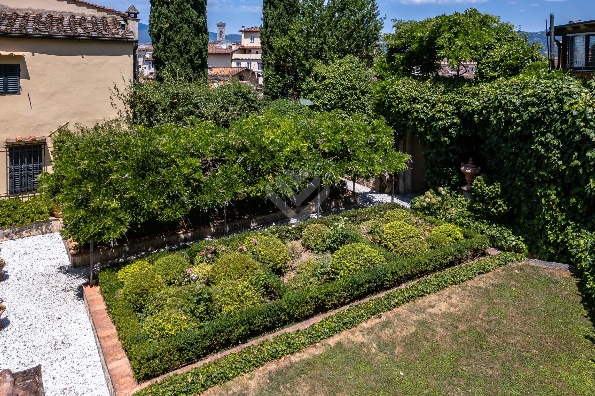 Il cuore verde della proprietà è il giardino privato, impreziosito da un elegante patio in legno di circa 30 mq e da un’altana con vista privilegiata sui monumenti simbolo di Firenze — un angolo di rara suggestione nel centro della città.