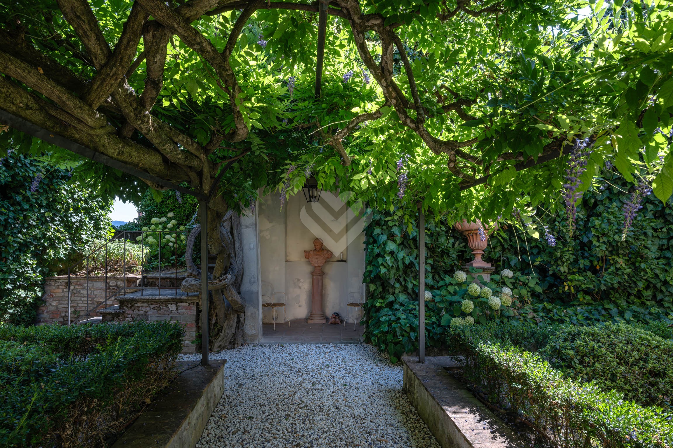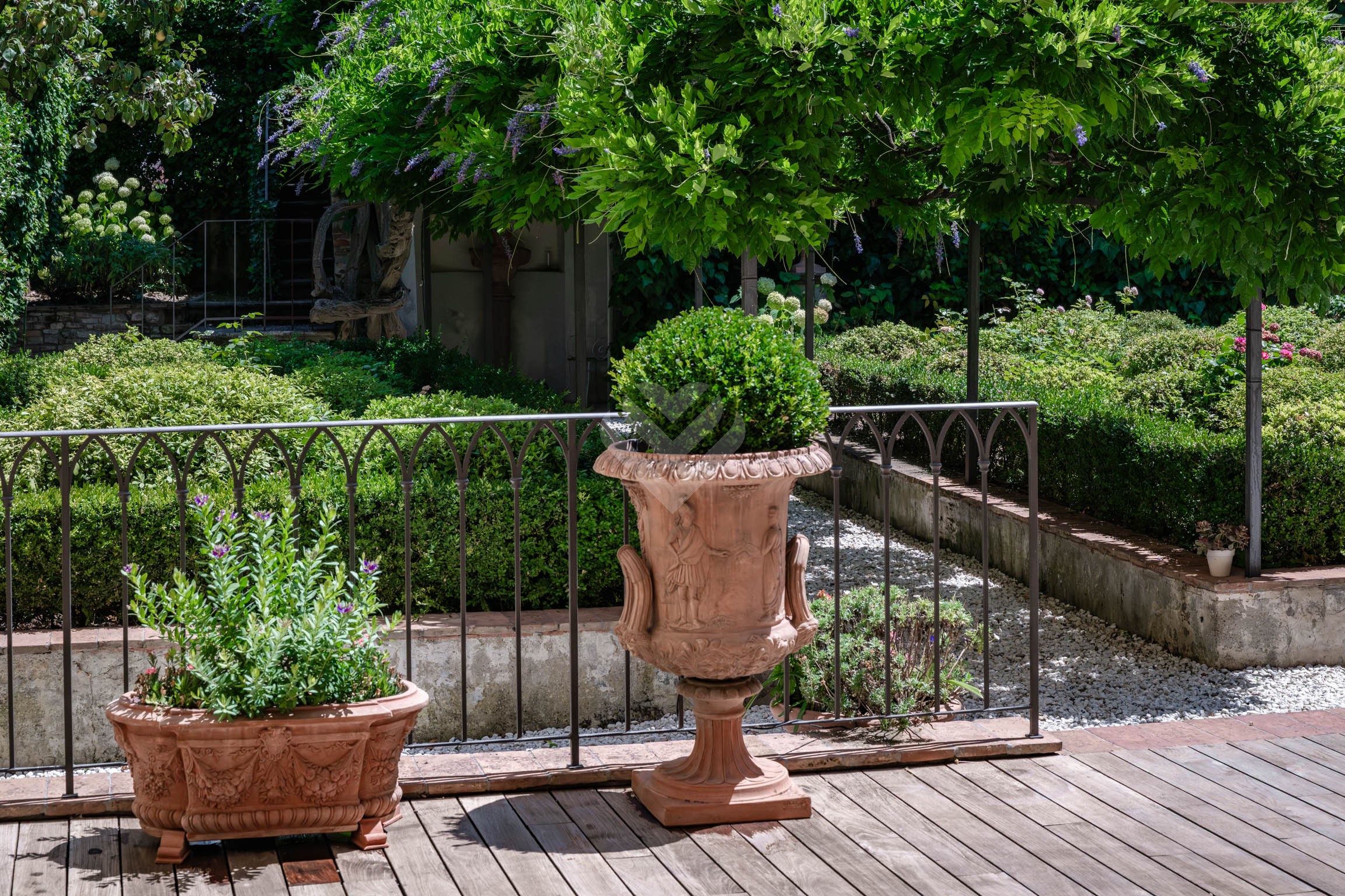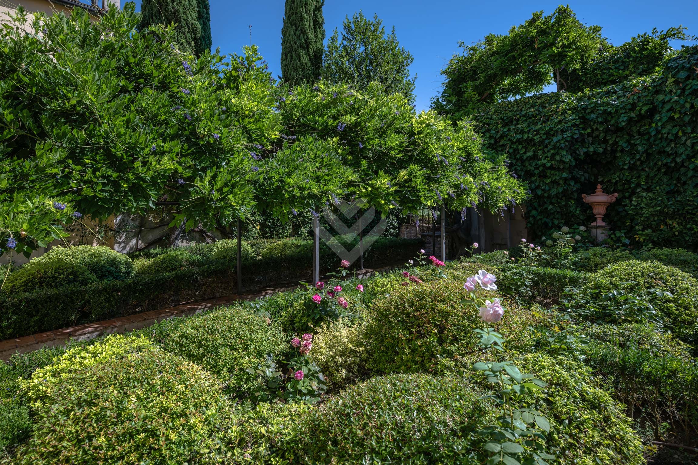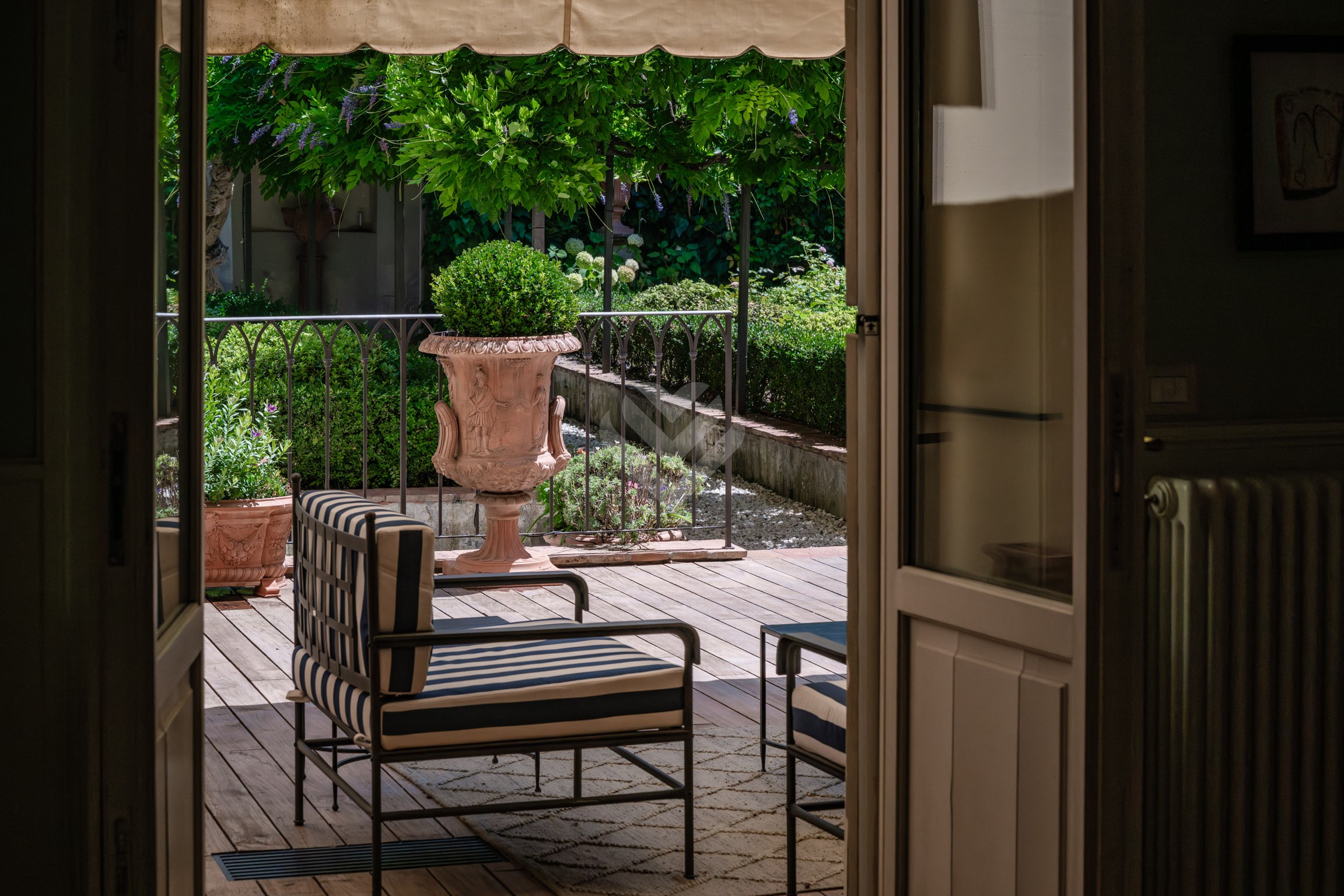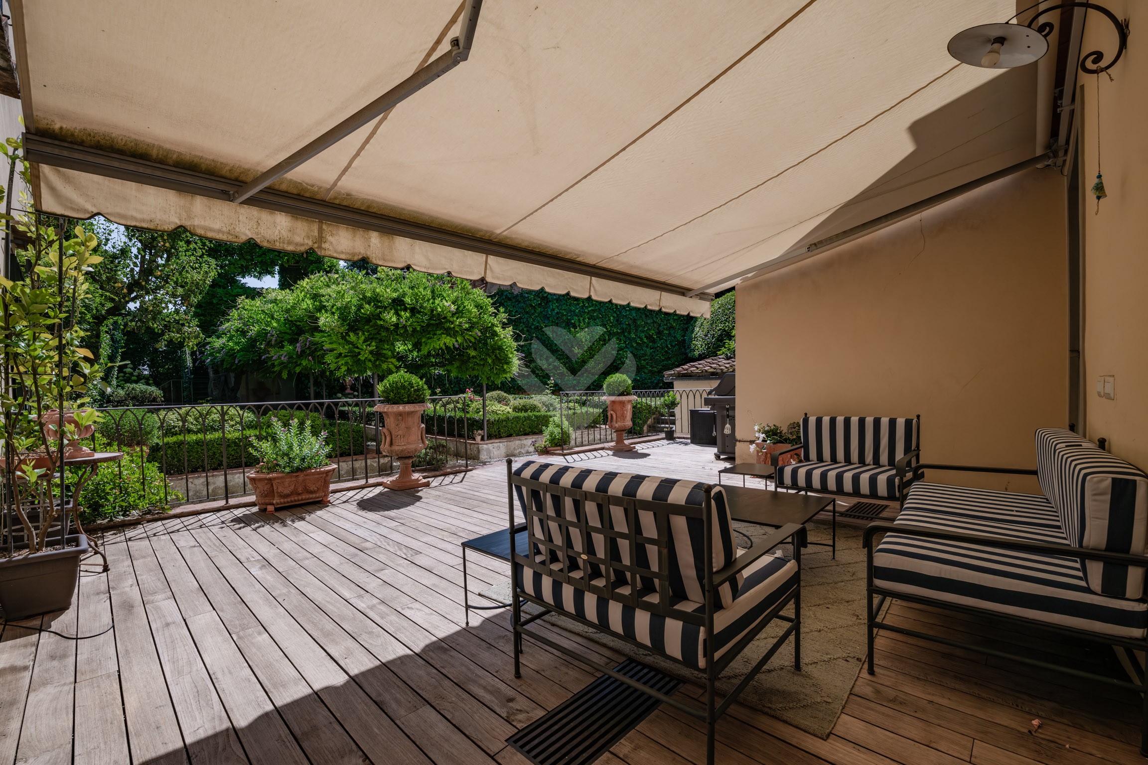 Il cuore verde della proprietà è il giardino privato, impreziosito da un elegante patio in legno di circa 30 mq e da un’altana con vista privilegiata sui monumenti simbolo di Firenze — un angolo di rara suggestione nel centro della città.