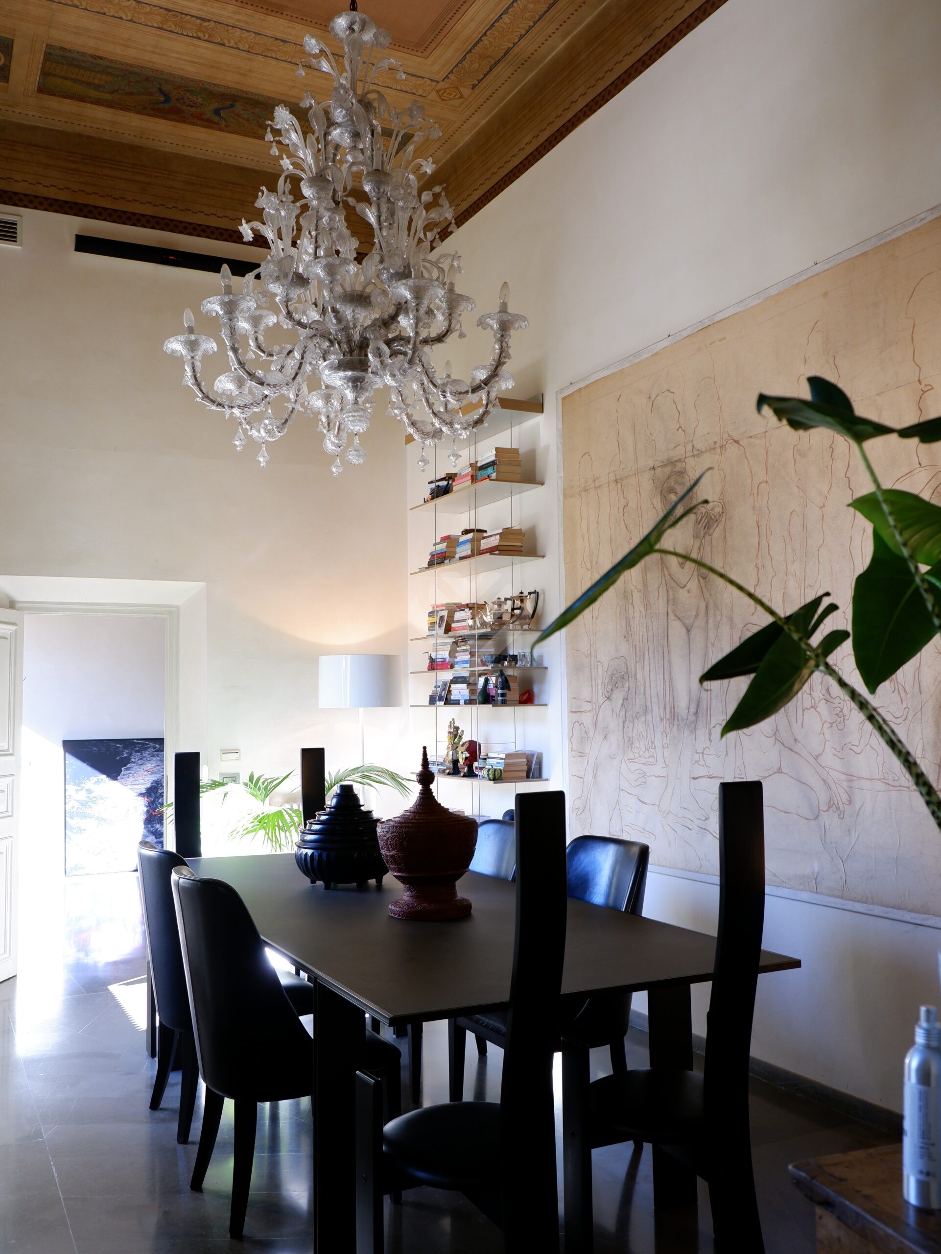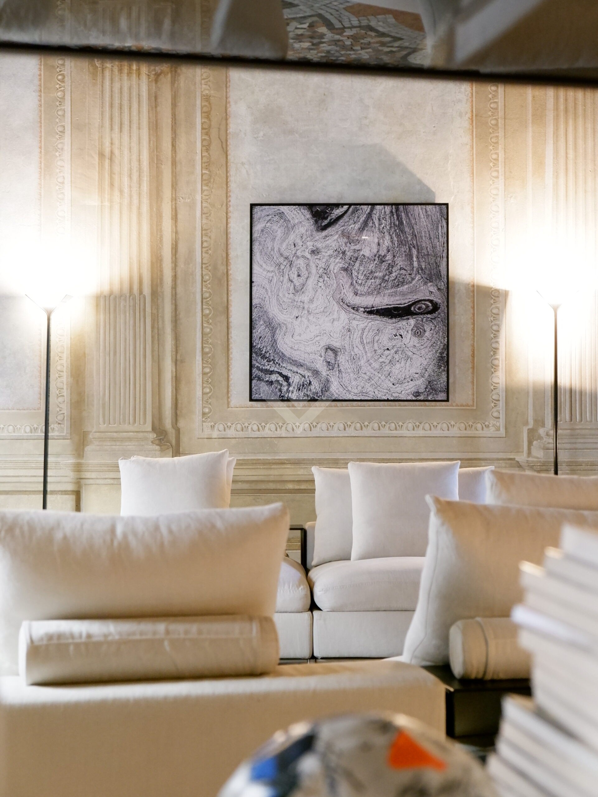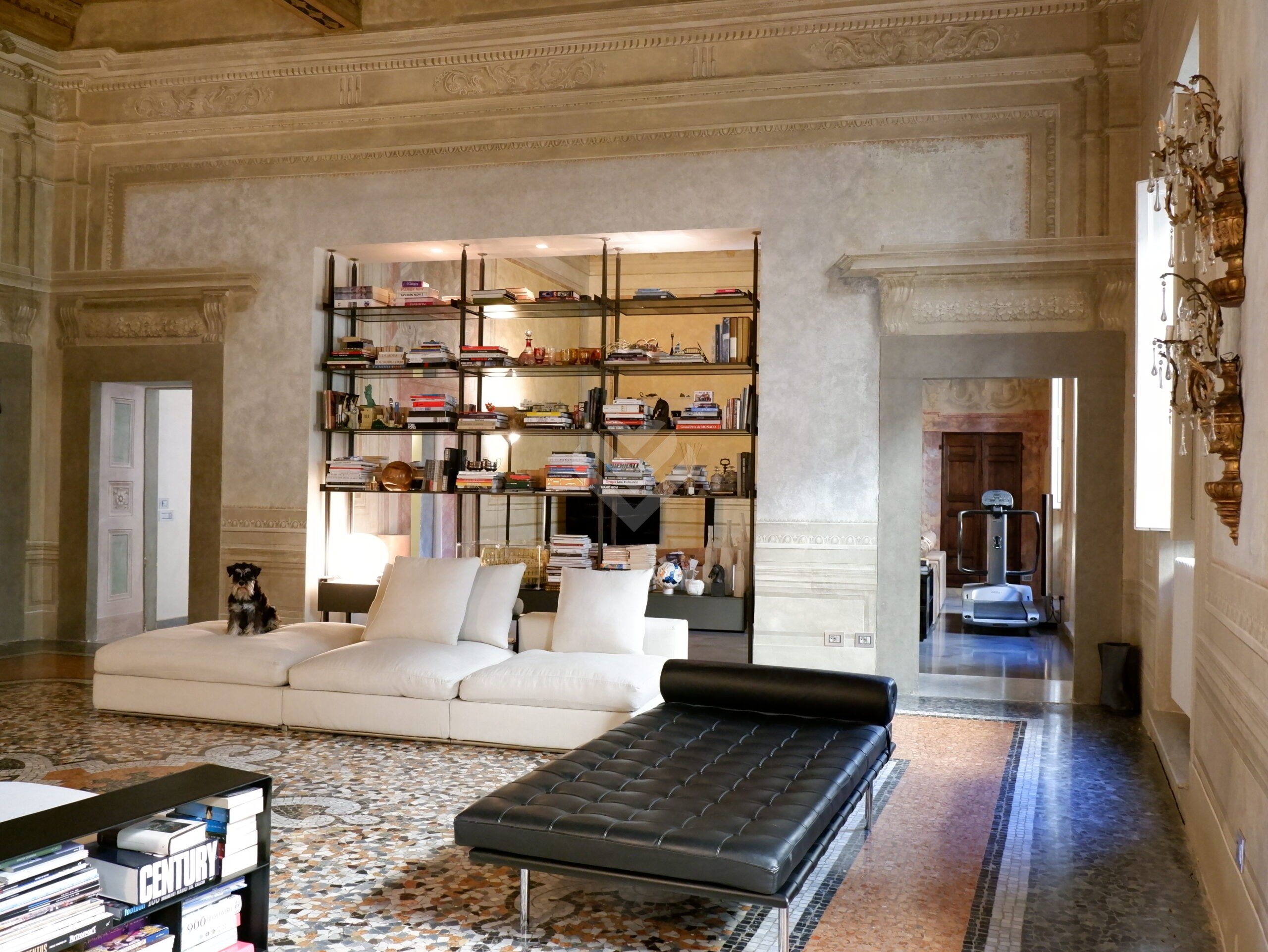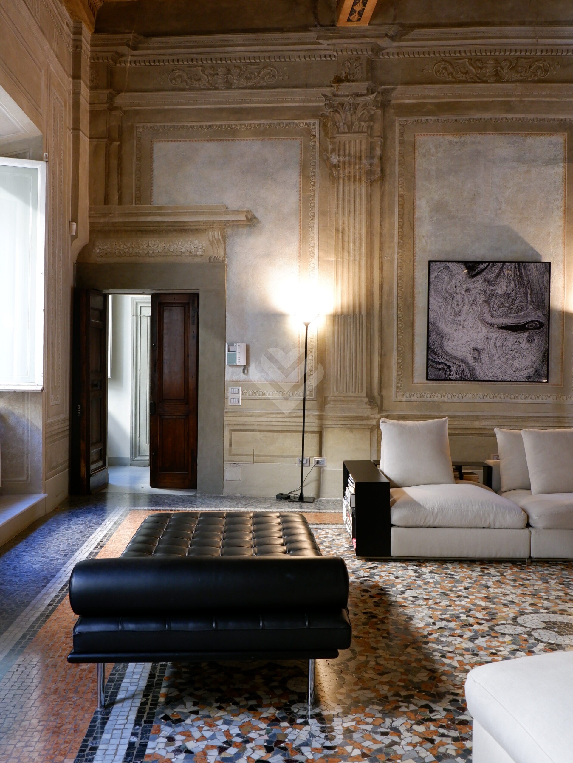 • Zona Giorno di Rappresentanza: Il cuore della casa è rappresentato dagli spazi living. Veniamo accolti in un doppio salone di straordinario impatto visivo, impreziosito da soffitti alti e affrescati che donano solennità e carattere all’ambiente. Adiacente al salone, troviamo una sala da pranzo formale, perfetta per ospitare cene importanti e ricevimenti, dove la storia dell’immobile dialoga con la luce naturale.