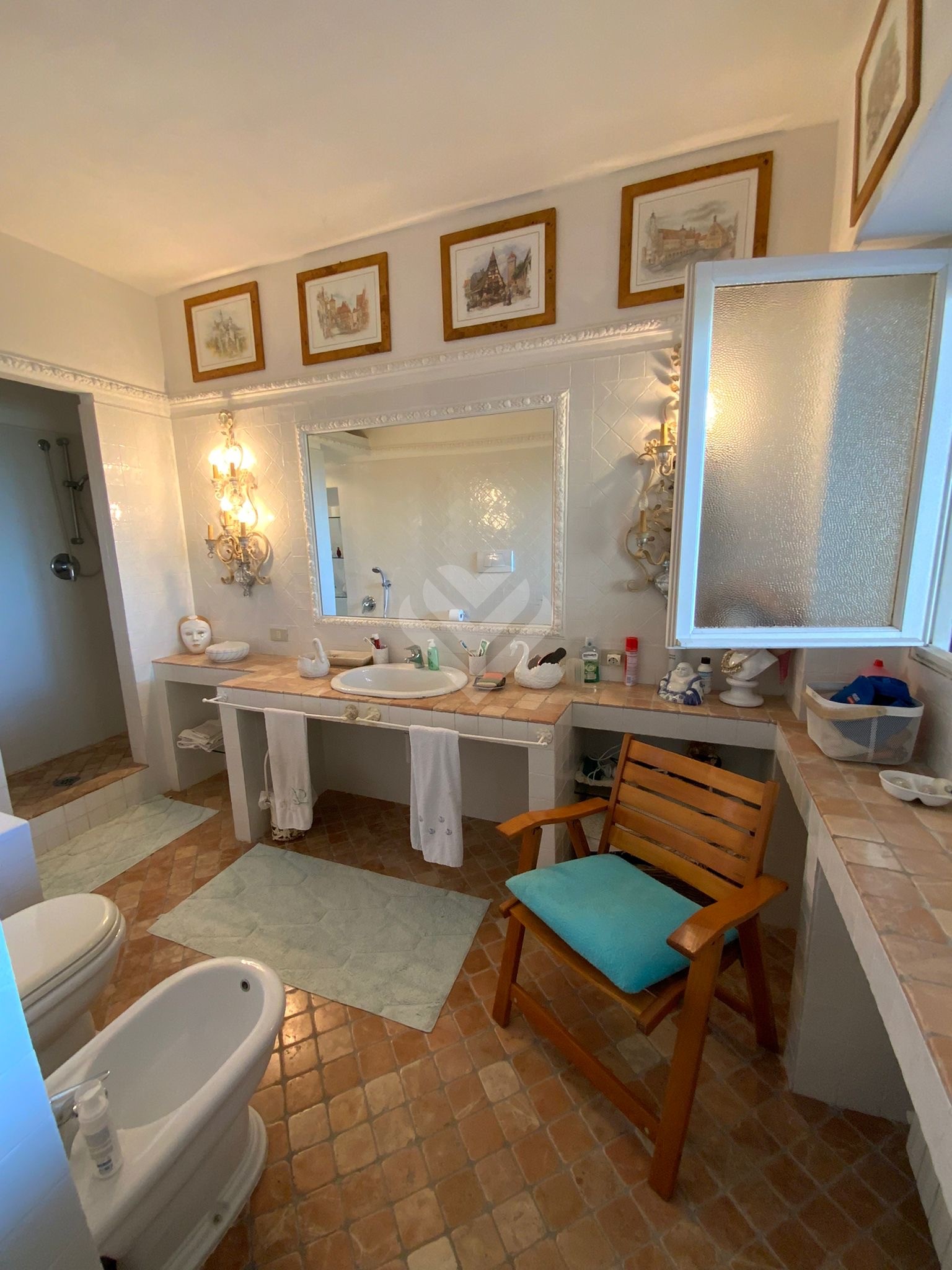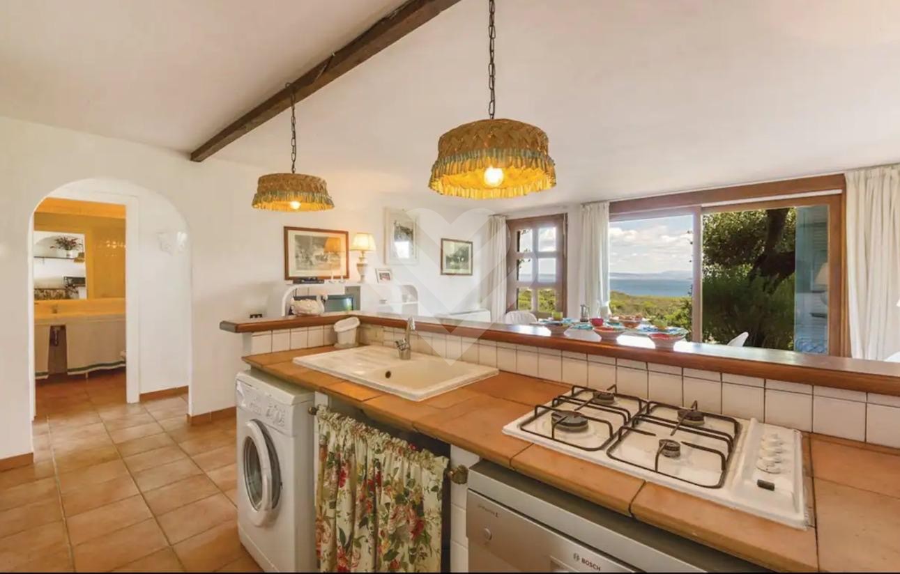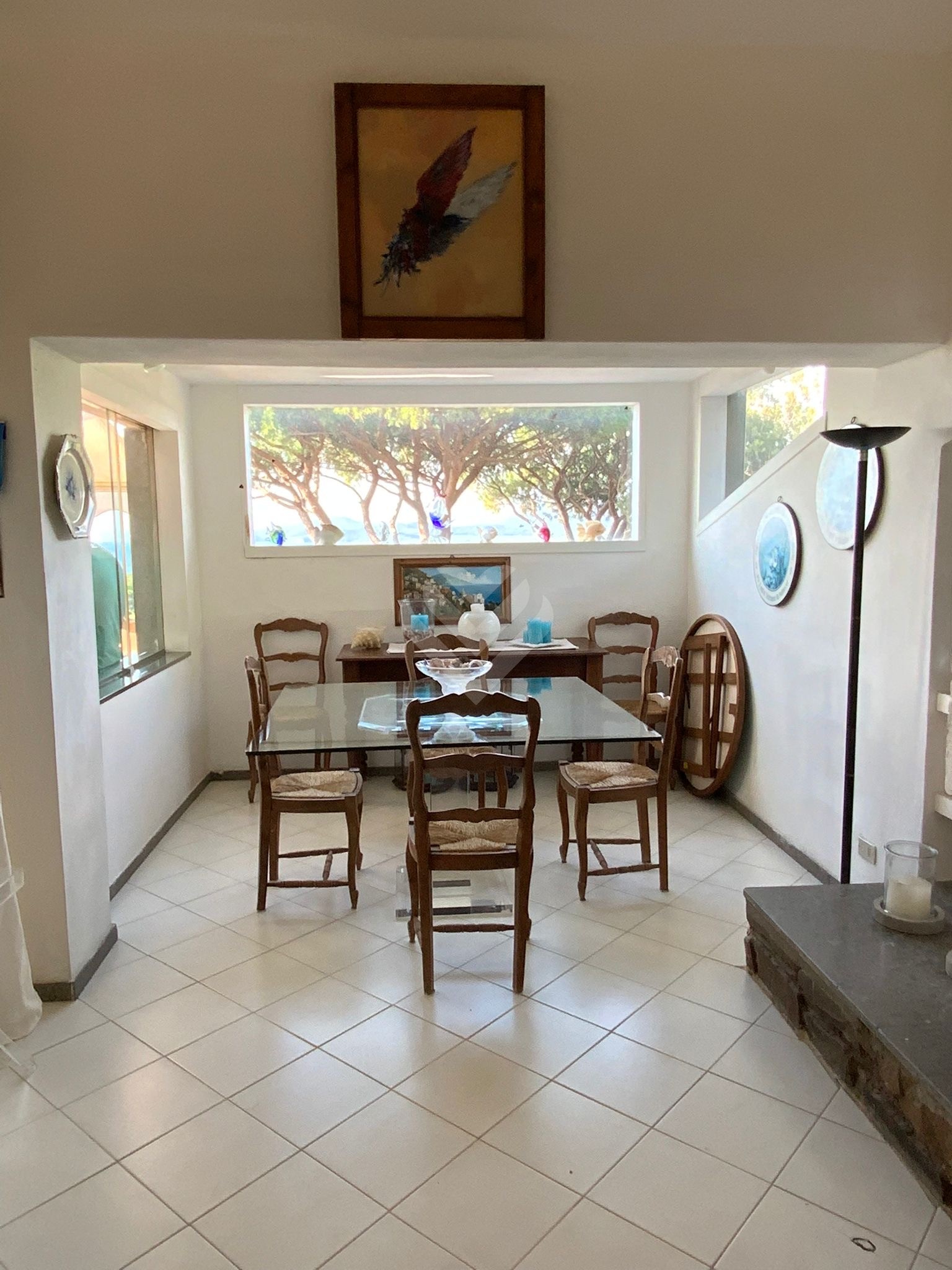– Piano terra: ingresso, ampio salone con camino e accesso alla terrazza vista mare, zona pranzo, grande cucina in muratura collegata alla terrazza principale e a quella retrostante con cucina esterna e barbecue, 1 camera matrimoniale e 1 bagno.